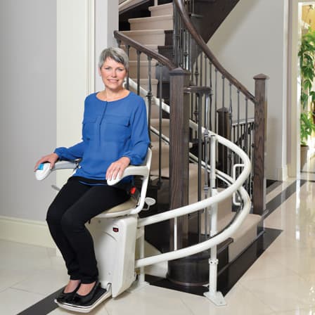 If the stairs have any turns curves or intermediate landings the savaria stairfriend curved stairlift would be required.